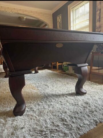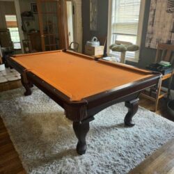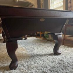 Beautiful 8ft Olhausen pool table with a rich mahogany finish and classic styling, offering a warm, timeless furniture-style look with elegant detailing and solid construction. Built by one of the most trusted names in billiards. Save big compared to buying new without compromising on quality!