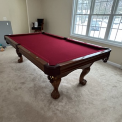 Brunswick tables are built for long-term durability and consistent performance, and this Contender model is in excellent condition with a 3-piece slate playing surface for accurate, professional-level gameplay. The Ball & Claw legs add a traditional, high-end touch that makes this table a true centerpiece. We at SOLO® Pool Table Movers ensure a smooth, hassle-free delivery and professional setup by experienced installers.